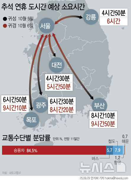 추석 3218만명 대이동…귀성 10월5일 집중, 귀경길은 분산